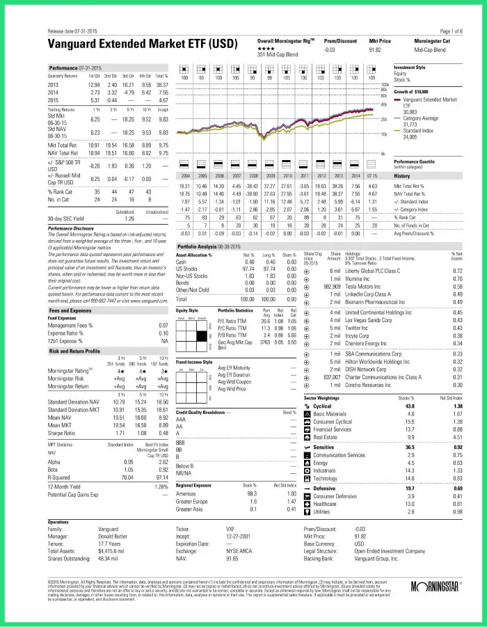 The Vanguard Extended Market ETF seeks to track the performance of a benchmark index that measures the investment return of small- and mid-capitalization stocks.